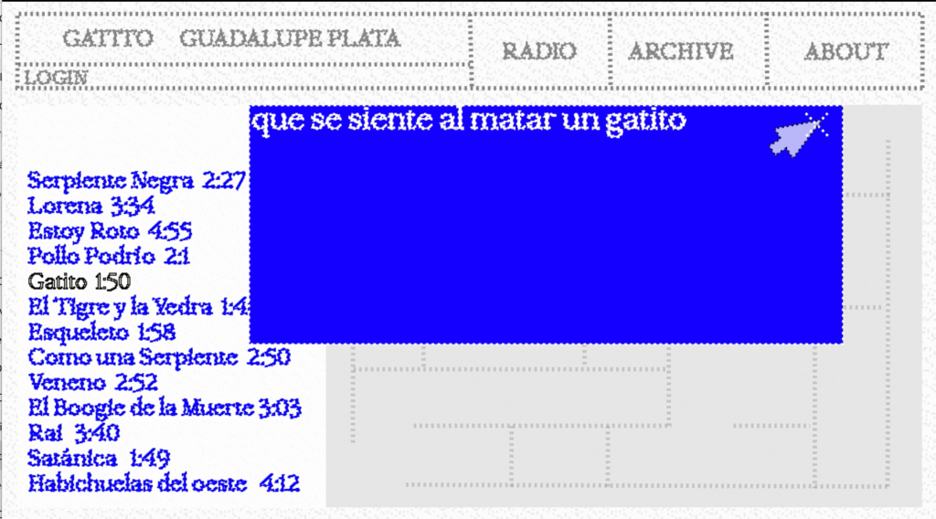 curriculum.vitae Fanzine/ Pony Express Videolyrics/ Guadalupe Plata Landing page/ Club de lectura Archivo Web/ Holy Hell